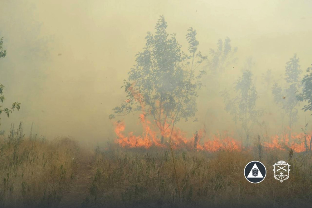 На острові Хортиця, що в Запоріжжі, знову виникла велика пожежа - вогонь швидко розповсюджується через пориви вітру.