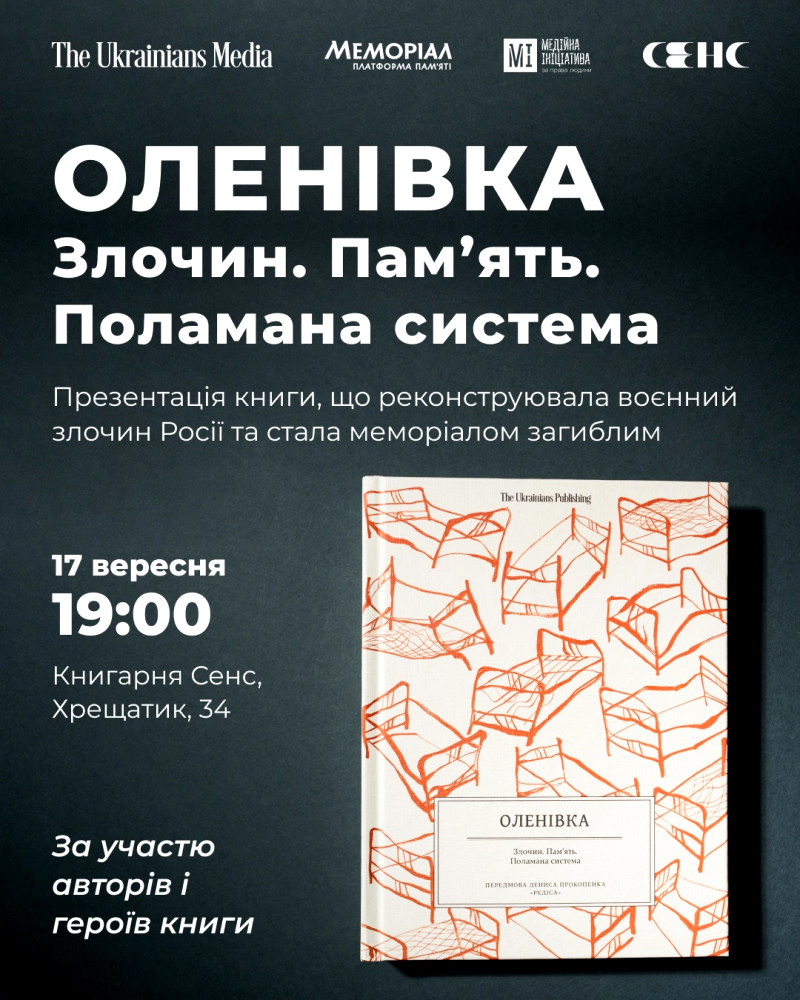 17 вересня, о 19:00, у Києві на вулиці Хрещатик, 34, в книгарні “Сенс” відбудеться захід, присвячений новій книзі “Оленівка. Злочин. Пам’ять. Поламана система”. Участь візьмуть автори та свідки подій.
