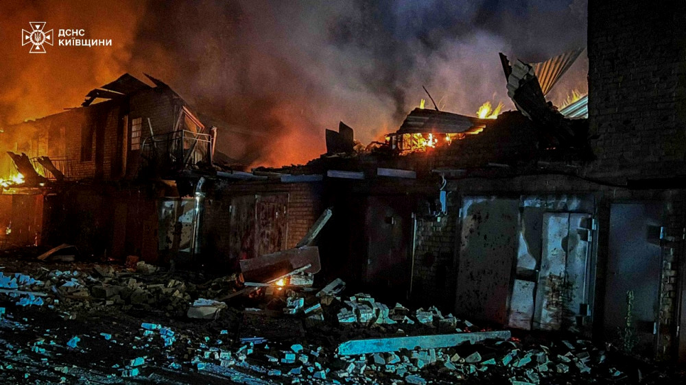 У Святошинському районі в результаті атаки на 14-поверховий житловий будинок виникла пожежа на 2-му та 3-му поверхах, а також у дворі сусіднього будинку. Горіли декілька автомобілів. Триває гасіння кількох пожеж у нежитлових приміщеннях.